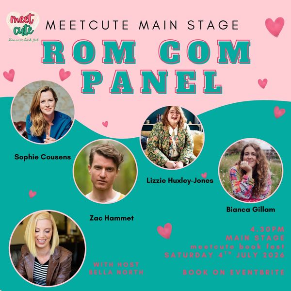 We're thrilled to announce this year's rom com panel is hosted by Bella North (author of WHY ROMANCE READERS SHOULD RULE THE WORLD) and includes guests Sophie Cousens (THIS TIME NEXT YEAR), Zac Hammet (SEE YOU AT THE FINISH LINE), Lizzie Huxley-Jones (REALITY CHECK) and Bianca Gillam (OFF SCRIPT).